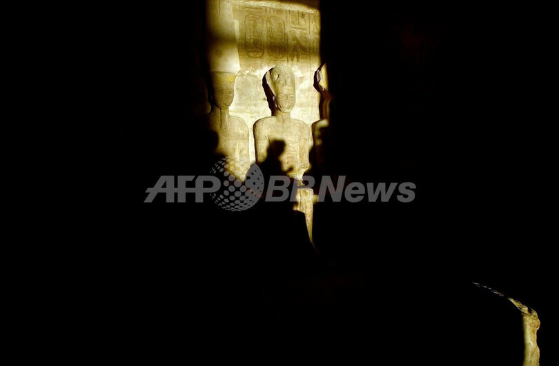 【10月24日 AFP】エジプトのアスワン(Aswan)南部にあるアブ・シンベル(Abu Simbel)神殿内にある古代エジプトの国王ラムセス2世(Ramses II)の彫像には、年に2回、10月22日と2月22日だけ太陽光が差し込む。今年の22日も、約2500人以上の観光客が同神殿を訪れた。考古学者らは、10月22日は王の即位した日、2月22日は王が生まれた日とみている。(c)AFP