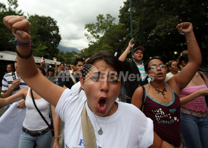 学生らは、チャベス大統領が示した憲法改正案はベネズエラを急速に社会主義化すると抗議し、「改革はノー、民主主義はイエス」と叫びながら通りを行進した。