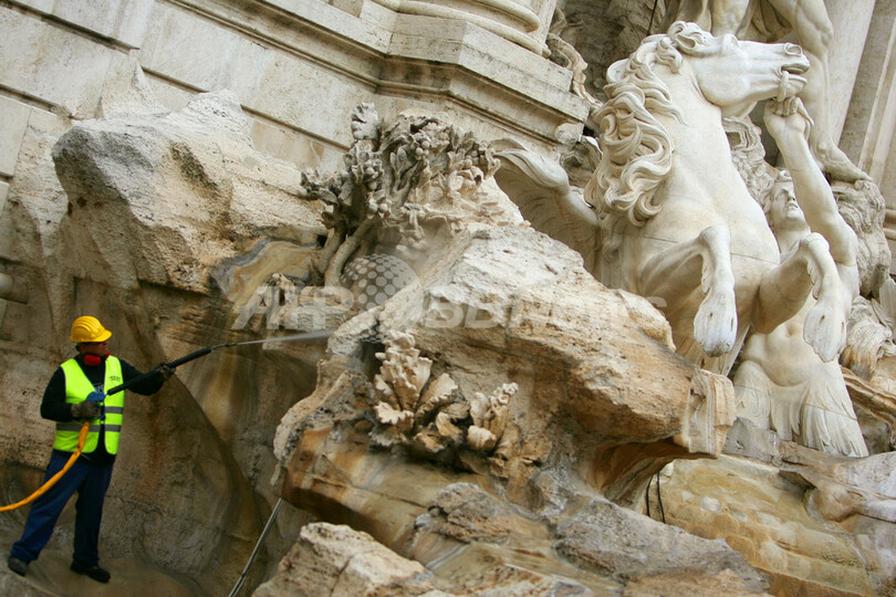 【10月25日 AFP】イタリアの首都ローマで22日、無政府主義者と称する一団によって染料を投げ込まれ赤く染まったトレビの泉(Trevi Fountain)の洗浄作業が行われた。
