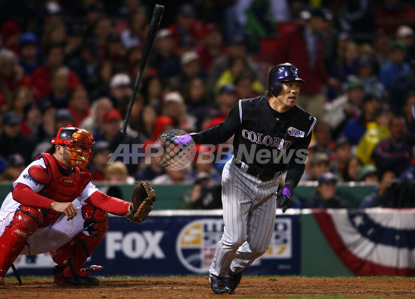 【10月25日 AFP】07MLBワールドシリーズ、ボストン・レッドソックス(Boston Red Sox)vsコロラド・ロッキーズ(Colorado Rockies)第1戦。2番・二塁で先発出場した松井稼頭央(Kazuo Matsui)は、6回にレッドソックスの先発ジョシュ・ベケット(Josh Beckett)から内野安打を放ち4打数1安打を記録。試合はロッキーズが1-13で大敗し、ポストシーズン初黒星を喫した。(c)AFP/Getty Images