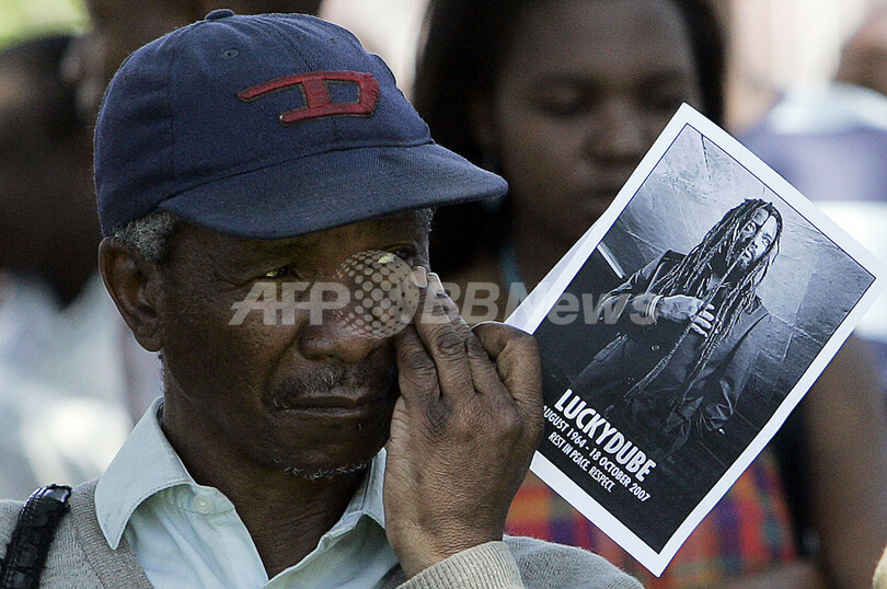 ニュース ライフ レゲエ歌手、ラッキー・デューベの追悼式行われる 2007年10月25日 13:40 発信地:ヨハネスブルク/南アフリカ [ アフリカ 南アフリカ ] このニュースをシェア ‹ › ❮ 2/5 ❯ 2007年10月24日、南アフリカのレゲエ歌手、ラッキー・デューベ(Lucky Dube)の追悼式に訪れたファン。(c)AFP/GIANLUIGI GUERCIA 画像作成中 ! 【10月25日 AFP】ヨハネスブルクで殺害された南アフリカのレゲエ歌手、ラッキー・デューベ(Lucky Dube、43)の追悼式が24日、ライブハウスBassline music clubで行われ、多くの人が追悼に訪れた。デューベはカージャックに失敗した人物に殺害されたと見られ、犯罪の多発する南アフリカの犠牲者リストに加えられた。(c)AFP ライフ 一覧へ> メディア・報道関係・法人の方向け 写真・動画 購入のお問合せ>