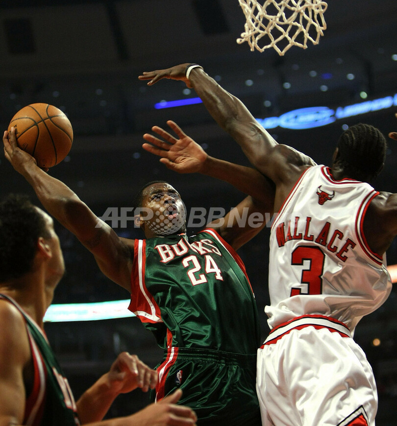 スポーツ バスケットボール ブルズ プレシーズンマッチ最終戦を白星で飾る 2007年10月26日 15:58 発信地:シカゴ/米国 [ 北米 米国 ] このニュースをシェア ‹ › ❮ 16/17 ❯ シュートを狙うバックスのデズモンド・メイソン(%%Desmond Mason%%、中央)。(c)AFP/Getty Images Jonathan Daniel 画像作成中 ! 【10月26日 AFP】07-08NBA・プレシーズンマッチ、シカゴ・ブルズ(Chicago Bulls)vsミルウォーキー・バックス(Milwaukee Bucks)。試合はブルズが97-81でバックスを降し、プレシーズンマッチ最終戦を白星で飾った。(c)AFP/Getty Images バスケットボール 一覧へ> メディア・報道関係・法人の方向け 写真・動画 購入のお問合せ>