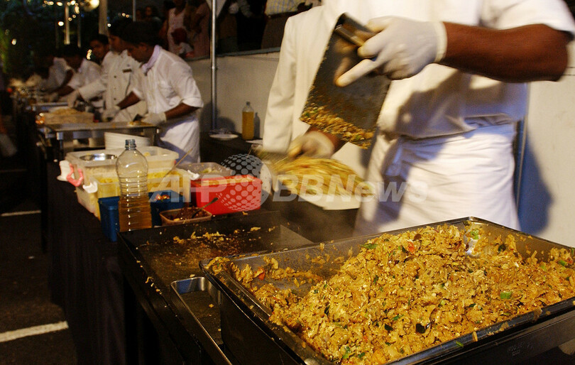 【10月27日 AFP】スリランカの人気メニュー「コットロティ(Kottu Roti、略称コット)」は、刻んだ「ロティ(スリランカの薄焼きパン)」と野菜、そして牛肉か鶏肉を使って作る料理。1970年代前半、同国東部バティカロア(Batticaloa)で生まれた。当初は貧しい人々のための安価なテークアウト用料理だったが、今では社会階層の壁を超えて、上流階級層にとっても定番メニューとなっている。特に若者などは、夜通しで遊んだ最後に「コット」を食べて夜を「しめる」ことが多いという。(c)AFP