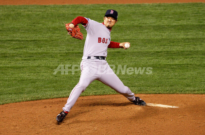 【10月28日 AFP】07MLBワールドシリーズ、コロラド・ロッキーズ(Colorado Rockies)vsボストン・レッドソックス(Boston Red Sox)第3戦。無死一・三塁の7回途中から4番手で登板したレッドソックスの岡島秀樹(Hideki Okajima)は、ロッキーズのマット・ホリデイ(Matt Holliday)に3ラン本塁打を浴びるなど1回2安打1失点2奪三振でマウンドを降りた。試合はレッドソックスが10-5で勝利し、レッドソックスは3連勝を飾りワールドシリーズ制覇に王手をかけた。(c)AFP/Getty Images