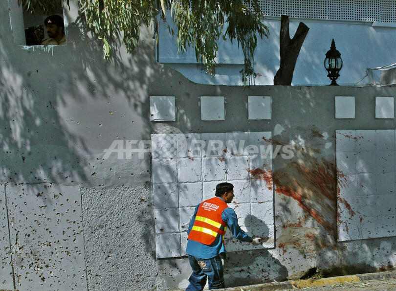現場は治安当局により完全に封鎖され、報道関係者の立入は禁止された。(c)AFP/Farooq Naeem