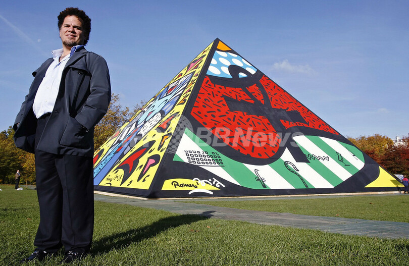 【10月31日 AFP】ロンドン(London)のハイドパーク(Hyde Park)に30日、ブラジル人ポップアーティストのロメロ・ブリット(Romero Britto)氏が制作した約14メートルのピラミッドの彫刻が登場した。この作品は、ロンドンのO2アリーナ(O2 arena)で開かれる「ツタンカーメンとファラオの黄金時代(Tutankhamun and the Golden Age of the Pharaohs)」展の一環として製作されたもの。(c)AFP