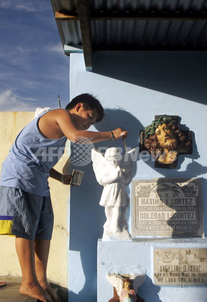 ニュース ライフ フィリピンの「万聖節」は、家族で先祖の墓参り 2007年11月2日 18:19 発信地:マニラ/フィリピン [ アジア・オセアニア フィリピン ] このニュースをシェア ‹ › ❮ 1/8 ❯ 2007年10月31日、マニラ(Manila)にある墓地で、墓に塗装を少年。(c)AFP/JES AZNAR 画像作成中 ! 【11月2日 AFP】11月1日にカトリック教の諸聖人を祝う「万聖節(All Saints Day)」を迎えるフィリピンでは31日、多くの人々が親族や友人の墓を訪れ、祈りを捧げた。(c)AFP/JES AZNAR ライフ 一覧へ> メディア・報道関係・法人の方向け 写真・動画 購入のお問合せ>