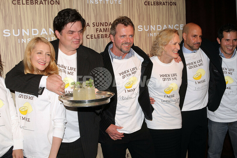 2007年11月5日、サンダンス・インスティテュート(Sundance Institute)の26回目の祝賀会「サンダンス・ファミリー・セレブレーション(A Sundance Family Celebration)」に登場した(右から)俳優のジョン・レグイザモ(%%John Leguizamo%%)とスタンリー・トゥッチ(%%Stanley Tucci%%)、女優のグレン・クローズ(%%Glenn Close%%)、俳優のエイダン・クウィン(%%Aidan Quinn%%)とオリバー・プラット(%%Oliver Platt%%)、女優のパトリシア・クラークソン(%%Patricia Clarkson%%)。(c)AFP/Getty Images Scott Gries