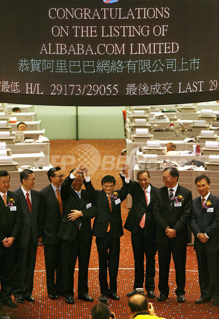 【11月6日 AFP】(6日 一部更新)中国のB2B(企業間電子商取引)オンライン・マーケットの「アリババ(阿里巴巴、alibaba.com)」が6日、香港(Hong Kong)株式市場に上場し、午前の取引で公募価格13.5香港ドル(約199.4円)を124%上回る30.20香港ドル(約446.1円)の初値をつけ、193%高の39.5香港ドル(約583.1円)で上場初日の取引を終えた。