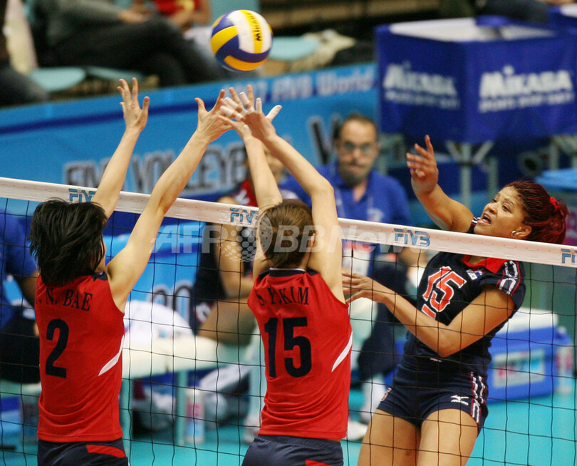 スポーツ スポーツ その他 韓国 ドミニカ共和国を降し大会初勝利 2007年11月6日 17:45 発信地:大阪 [ アジア・オセアニア 大阪 ] このニュースをシェア ‹ › ❮ 2/4 ❯ 韓国のペ・ユナ(%%Bae Yoo-Na%%、左)とキム・セヨン(%%Kim Se-Young%%、中央)のブロックに対しスパイクを打ち込むドミニカ共和国のコシリ・ロドリゲス(%%Cosiri Rodriguez%%)。(c)AFP/KAZUHIRO NOGI 画像作成中 ! 【11月6日 AFP】バレーボールW杯2007(FIVB Volleyball World Cup 2007)・女子・第2ラウンド、ドミニカ共和国vs韓国。試合は韓国がセットカウント3-1(26-24、22-25、25-20、25-21)で勝利し、連敗を3で止め初勝利を飾った。(c)AFP スポーツ その他 一覧へ> メディア・報道関係・法人の方向け 写真・動画 購入のお問合せ>