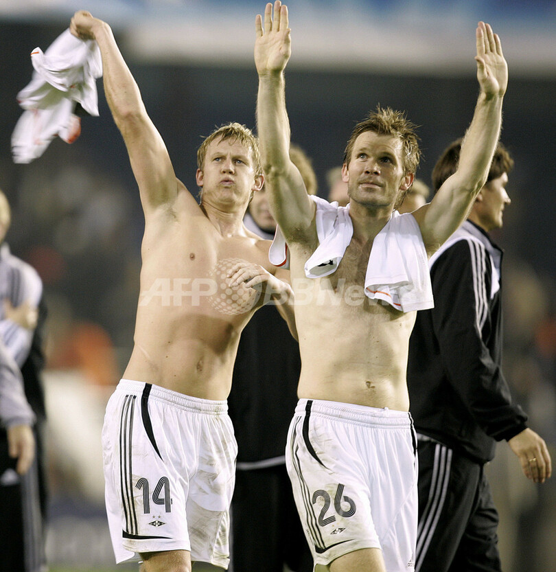 スポーツ サッカー ローゼンボリ アウェーでバレンシアに勝利 2007年11月7日 12:50 発信地:バレンシア/スペイン [ ヨーロッパ スペイン ] このニュースをシェア ‹ › ❮ 1/13 ❯ 試合後にサポーターの歓声に応えるローゼンボリのステファン・イヴェルセン(%%Steffen Iversen%%、左)とビョルン・トーレ・クバルメ(%%Bjorn Tore Kvarme%%)。(c)AFP/DIEGO TUSON 画像作成中 ! 【11月7日 AFP】サッカー欧州チャンピオンズリーグ2007-08(UEFA Champions League 2007-08)・グループリーグB・第4節、バレンシア(Valencia)vsローゼンボリ(Rosenborg)。試合はアウェーのローゼンボリが2-0で勝利し、通算成績を2勝1敗1分けとした。(c)AFP サッカー 一覧へ> メディア・報道関係・法人の方向け 写真・動画 購入のお問合せ>