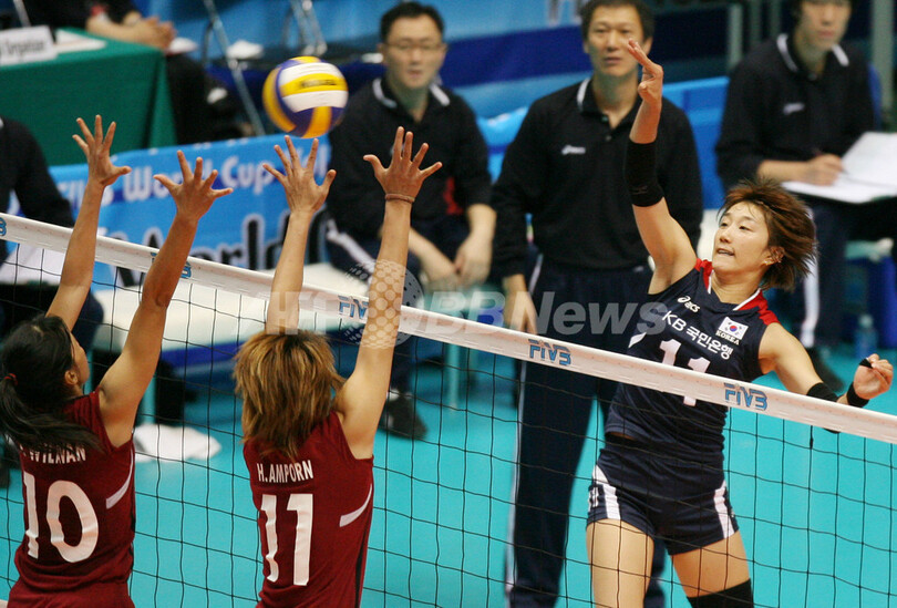 スポーツ スポーツ その他 韓国 タイ降し大会2勝目を挙げる 2007年11月7日 18:49 発信地:大阪 [ アジア・オセアニア 大阪 ] このニュースをシェア ‹ › ❮ 6/6 ❯ タイのウィラワン・アピヤポン(%%Wilavan Apinyapong%%、左)とアンポーン・ヤーパー(%%Amporn Hyapha%%、中央)のブロックに対しスパイクを打ち込む韓国のハン・ユミ(%%Han Yoo-Mi%%)。(c)AFP/KAZUHIRO NOGI 画像作成中 ! 【11月7日 AFP】バレーボールW杯2007(FIVB Volleyball World Cup 2007)・女子・第2ラウンド、韓国vsタイ。試合は韓国が3-0(25-21、25-20、25-21)でタイを降し、大会2勝目を挙げた。(c)AFP スポーツ その他 一覧へ> メディア・報道関係・法人の方向け 写真・動画 購入のお問合せ>