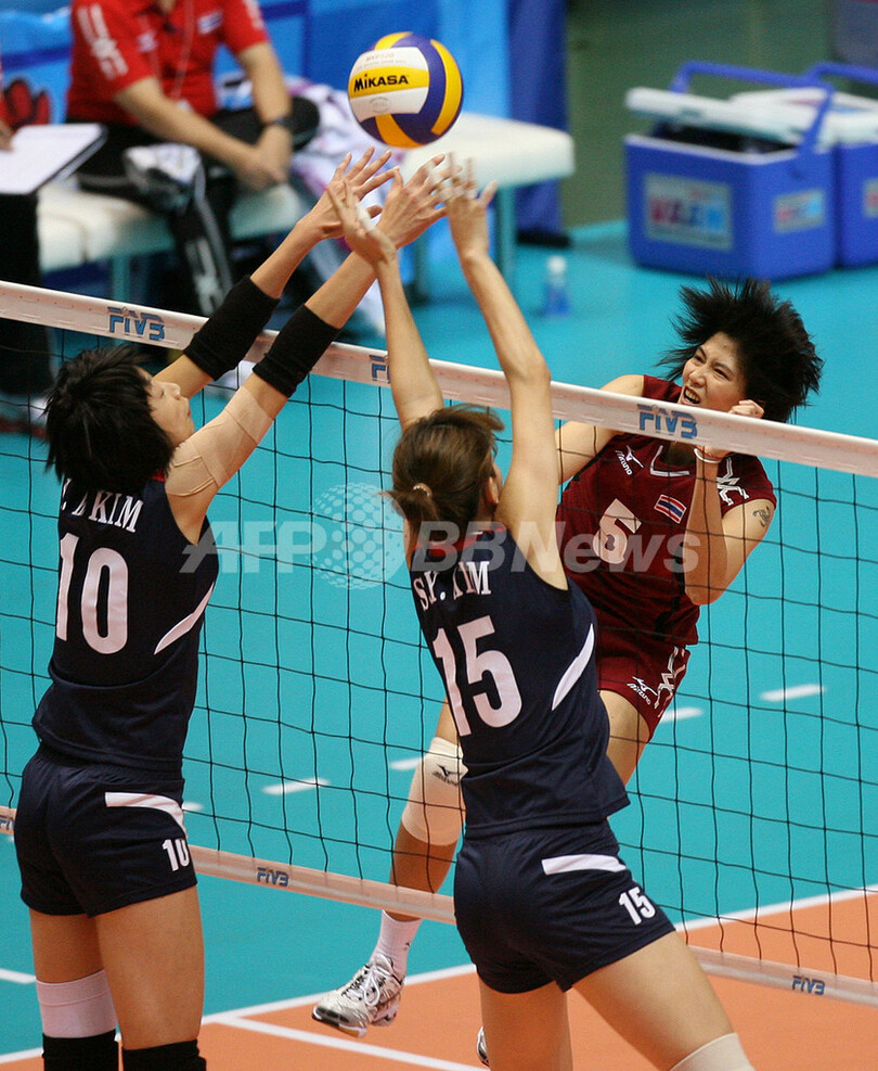スポーツ スポーツ その他 韓国 タイ降し大会2勝目を挙げる 2007年11月7日 18:49 発信地:大阪 [ アジア・オセアニア 大阪 ] このニュースをシェア ‹ › ❮ 3/6 ❯ タイのプルームジット・ティンカオ(%%Pleumjit Thinkaow%%、みぎ)のスパイクをブロックする韓国のキム・ヨンギョン(%%Kim Yeon-Koung%%、左)とキム・セヨン(%%Kim Se-Young%%、中央)。(c)AFP/KAZUHIRO NOGI 画像作成中 ! 【11月7日 AFP】バレーボールW杯2007(FIVB Volleyball World Cup 2007)・女子・第2ラウンド、韓国vsタイ。試合は韓国が3-0(25-21、25-20、25-21)でタイを降し、大会2勝目を挙げた。(c)AFP スポーツ その他 一覧へ> メディア・報道関係・法人の方向け 写真・動画 購入のお問合せ>