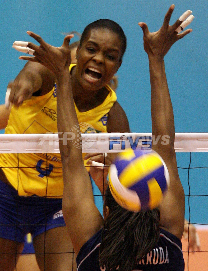 スポーツ スポーツ その他 米国 フルセットの末にブラジルとの全勝対決を制し開幕5連勝を飾る 2007年11月7日 21:02 発信地:宮城 [ アジア・オセアニア 宮城 ] このニュースをシェア ‹ › ❮ 2/11 ❯ 米国のダニエル・スコット(%%Danielle Scott-Arruda%%)のブロックに対しスパイクを放つブラジルのファビアナ・クラウディノ(%%Fabiana Claudino%%)。(c)AFP/TOSHIFUMI KITAMURA 画像作成中 ! 【11月7日 AFP】バレーボールW杯2007(FIVB Volleyball World Cup 2007)・女子・第2ラウンド、ブラジルvs米国。試合はフルセットの末に米国がセットカウント3-2(17-25、16-25、25-21、25-23、15-9)でブラジルに競り勝ち、開幕5連勝を飾った。(c)AFP スポーツ その他 一覧へ> メディア・報道関係・法人の方向け 写真・動画 購入のお問合せ>