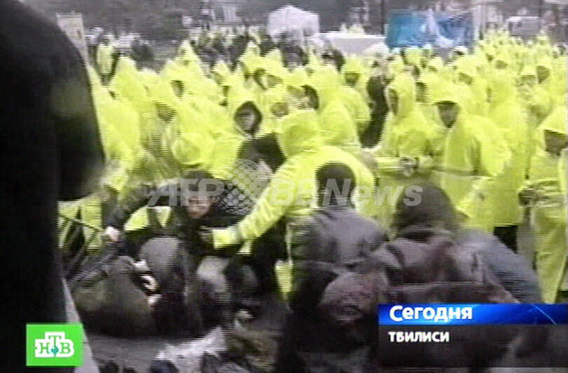 サーカシビリ大統領は前日7日、親政府系民間テレビ放送網Rustavi 2を通じて首都トビリシ(Tbilisi)に非常事態を宣言。同国では数日間、反政府デモと治安部隊が衝突していた。