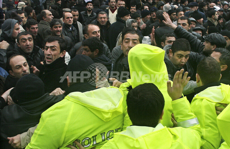 サーカシビリ大統領は前日7日、親政府系民間テレビ放送網Rustavi 2を通じて首都トビリシ(Tbilisi)に非常事態を宣言。同国では数日間、反政府デモと治安部隊が衝突していた。