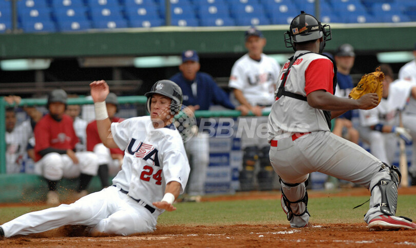 スポーツ 野球 米国 パナマ降し2連勝 2007年11月8日 18:26 発信地:台中/台湾 [ 中国・台湾 台湾 ] このニュースをシェア ‹ › ❮ 1/4 ❯ ホームに滑り込む米国のタイラー・コルヴィン(%%Tyler Colvin%%、左)。(c)AFP/Sam YEH 画像作成中 ! 【11月8日 AFP】07野球W杯(37th Baseball World Cup 2007)・グループA、米国vsパナマ。試合は米国が7-0でパナマを降し、2連勝を飾った。(c)AFP 野球 一覧へ> メディア・報道関係・法人の方向け 写真・動画 購入のお問合せ>