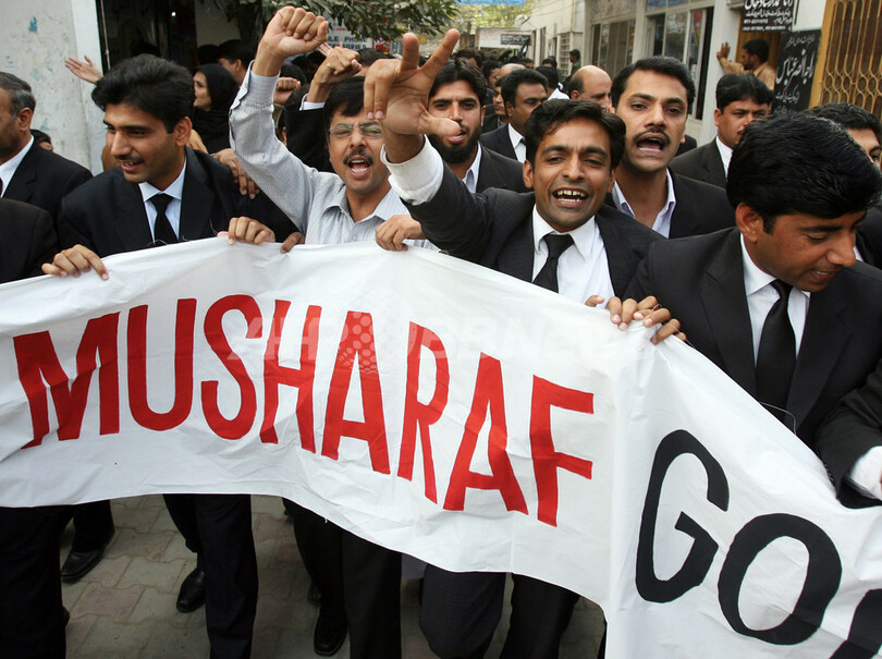 ムシャラフ大統領は前週3日、憲法の停止を宣言して非常事態宣言を発令、厳しい報道統制をしいた。今週初めにはこれに抗議する司法関係者らを中心とする抗議行動が発生、警察が弾圧し、弁護士数百人を逮捕した。(c)AFP