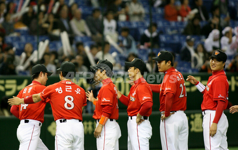 スポーツ 野球 ワイバーンズ 初戦でドラゴンズを破る 2007年11月8日 22:35 発信地:東京 [ アジア・オセアニア 東京 ] このニュースをシェア ‹ › ❮ 12/12 ❯ 試合前の選手紹介を受け、チームメイトに迎えられるワイバーンズのチェ・ジョン(%%Choi Jeong%%、左)。(c)AFP/Ken SHIMIZU 画像作成中 ! 【11月8日 AFP】野球、第3回コナミカップ・アジアシリーズ(Konami Cup Asia Series 2007)・第2試合、中日ドラゴンズ(Chunichi Dragons、日本)vsSKワイバーンズ(Sk Wyverns、韓国)。試合は、ワイバーンズが6-3でドラゴンズに勝利した。(c)AFP 野球 一覧へ> メディア・報道関係・法人の方向け 写真・動画 購入のお問合せ>