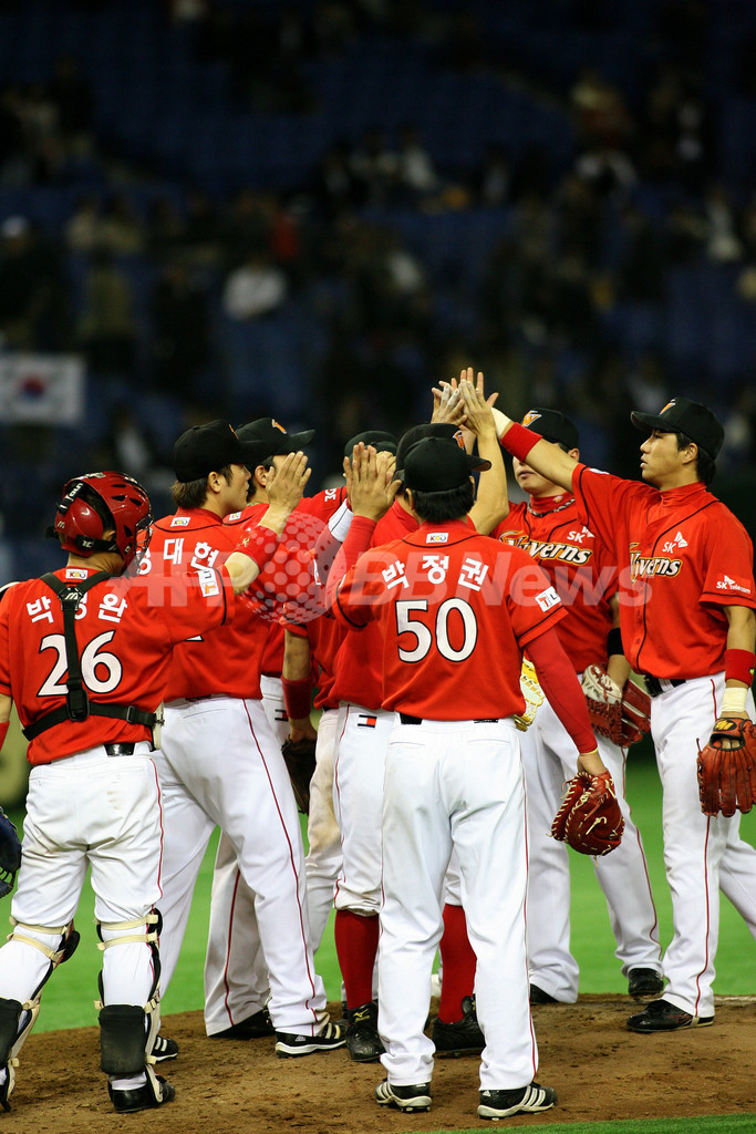 スポーツ 野球 ワイバーンズ 初戦でドラゴンズを破る 2007年11月8日 22:35 発信地:東京 [ アジア・オセアニア 東京 ] このニュースをシェア ‹ › ❮ 3/12 ❯ 試合後に勝利の喜びを分かち合うワイバーンズの選手たち。(c)AFP/Ken SHIMIZU 画像作成中 ! 【11月8日 AFP】野球、第3回コナミカップ・アジアシリーズ(Konami Cup Asia Series 2007)・第2試合、中日ドラゴンズ(Chunichi Dragons、日本)vsSKワイバーンズ(Sk Wyverns、韓国)。試合は、ワイバーンズが6-3でドラゴンズに勝利した。(c)AFP 野球 一覧へ> メディア・報道関係・法人の方向け 写真・動画 購入のお問合せ>