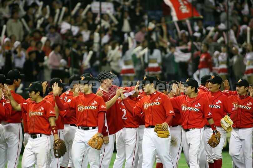 スポーツ 野球 ワイバーンズ 初戦でドラゴンズを破る 2007年11月8日 22:35 発信地:東京 [ アジア・オセアニア 東京 ] このニュースをシェア ‹ › ❮ 2/12 ❯ 試合後に勝利の喜びを分かち合うワイバーンズの選手たち。(c)AFP/Ken SHIMIZU 画像作成中 ! 【11月8日 AFP】野球、第3回コナミカップ・アジアシリーズ(Konami Cup Asia Series 2007)・第2試合、中日ドラゴンズ(Chunichi Dragons、日本)vsSKワイバーンズ(Sk Wyverns、韓国)。試合は、ワイバーンズが6-3でドラゴンズに勝利した。(c)AFP 野球 一覧へ> メディア・報道関係・法人の方向け 写真・動画 購入のお問合せ>