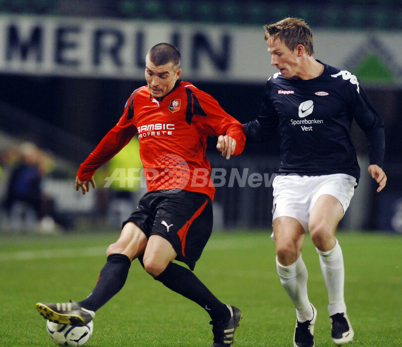 スポーツ サッカー レンヌvsSKブランは引き分けに終わる 2007年11月9日 8:06 発信地:レンヌ/フランス [ ヨーロッパ フランス ] このニュースをシェア ‹ › ❮ 1/6 ❯ SKブランのヤン・グンナー・ソリ(%%Jan Gunnar Solli%%、右)のマークからボールをキープするレンヌのジェローム・ルロワ(%%Jerome Leroy%%)。(c)AFP/FRANK PERRY 画像作成中 ! 【11月9日 AFP】サッカーUEFA杯2007-08(UEFA Cup 2007-08)・グループリーグD・第2節、レンヌ(Stade Rennais FC)vsSKブラン(SK Brann)。試合は1-1の引き分けに終わり、両チームは勝ち点1を分け合った。(c)AFP サッカー 一覧へ> メディア・報道関係・法人の方向け 写真・動画 購入のお問合せ>