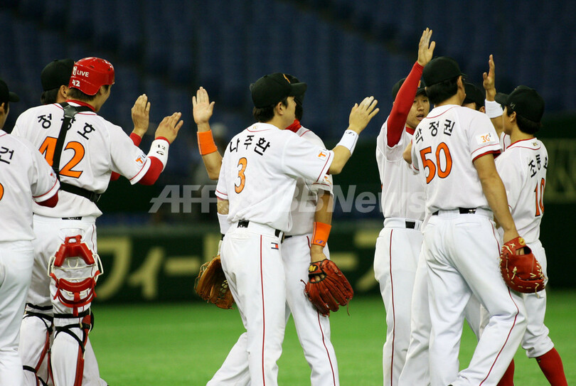 スポーツ 野球 SKワイバーンズ チャイナ・スターズを降し2連勝 2007年11月9日 17:18 発信地:東京 [ アジア・オセアニア 東京 ] このニュースをシェア ‹ › ❮ 1/5 ❯ 勝利を喜ぶワイバーンズの選手たち。(c)AFP/KEN SHIMIZU 画像作成中 ! 【11月9日 AFP】野球、第3回コナミカップ・アジアシリーズ(Konami Cup Asia Series 2007)・第3試合、SKワイバーンズ(Sk Wyverns、韓国)vsチャイナ・スターズ(China Stars、中国選抜)。試合はワイバーンズが13-0でチャイナ・スターズに大勝し、2連勝飾った。(c)AFP 野球 一覧へ> メディア・報道関係・法人の方向け 写真・動画 購入のお問合せ>