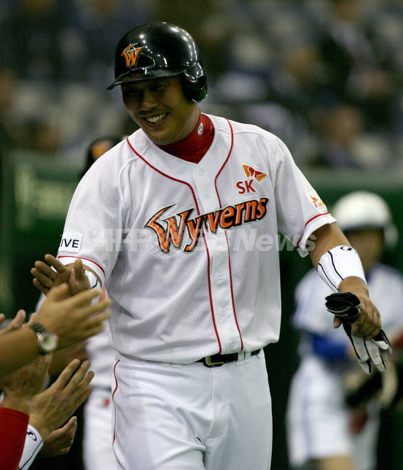 スポーツ 野球 SKワイバーンズ チャイナ・スターズを降し2連勝 2007年11月9日 17:18 発信地:東京 [ アジア・オセアニア 東京 ] このニュースをシェア ‹ › ❮ 2/5 ❯ 本塁に生還しチームメイトから迎えられるワイバーンズのイ・ホジュン(%%Lee Ho-Joon%%)。(c)AFP/Getty Images 画像作成中 ! 【11月9日 AFP】野球、第3回コナミカップ・アジアシリーズ(Konami Cup Asia Series 2007)・第3試合、SKワイバーンズ(Sk Wyverns、韓国)vsチャイナ・スターズ(China Stars、中国選抜)。試合はワイバーンズが13-0でチャイナ・スターズに大勝し、2連勝飾った。(c)AFP 野球 一覧へ> メディア・報道関係・法人の方向け 写真・動画 購入のお問合せ>
