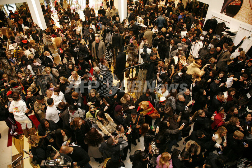 チュニックドレスが約70ドル(約7870円)、シルクのアニマル柄ミニドレスが約100ドル(約1万1250円)という手頃な価格も後押しして、5番街店では、レディース商品を中心に数時間で完売するアイテムも続出。レジには腕いっぱいに商品を抱えた人々が列を成した。(c)AFP