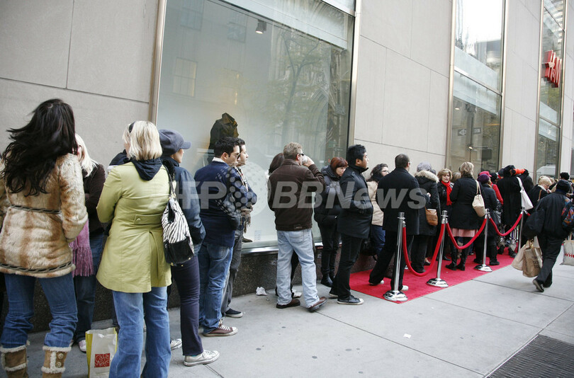 チュニックドレスが約70ドル(約7870円)、シルクのアニマル柄ミニドレスが約100ドル(約1万1250円)という手頃な価格も後押しして、5番街店では、レディース商品を中心に数時間で完売するアイテムも続出。レジには腕いっぱいに商品を抱えた人々が列を成した。(c)AFP