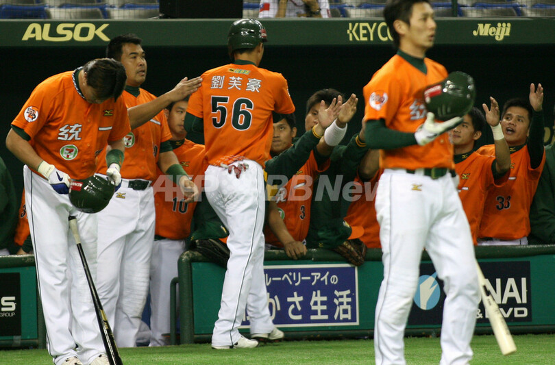 スポーツ 野球 ドラゴンズ 統一ライオンズを降し初白星 2007年11月9日 22:43 発信地:東京 [ アジア・オセアニア 東京 ] このニュースをシェア ‹ › ❮ 6/10 ❯ 2回に本塁へ生還して先制点を記録し、チームメイトから迎えられる統一ラインオンズのリィウ・フゥハオ(%%Liu Fu-Hao%%、中央)。(c)AFP/KEN SHIMIZU 画像作成中 ! 【11月9日 AFP】野球、第3回コナミカップ・アジアシリーズ(Konami Cup Asia Series 2007)・第4試合、統一ライオンズ(Uni-President Lions、台湾)vs中日ドラゴンズ(Chunichi Dragons、日本)。試合は中日ドラゴンズが4-2で統一ライオンズを降し、通算成績を1勝1敗とした。(c)AFP 野球 一覧へ> メディア・報道関係・法人の方向け 写真・動画 購入のお問合せ>