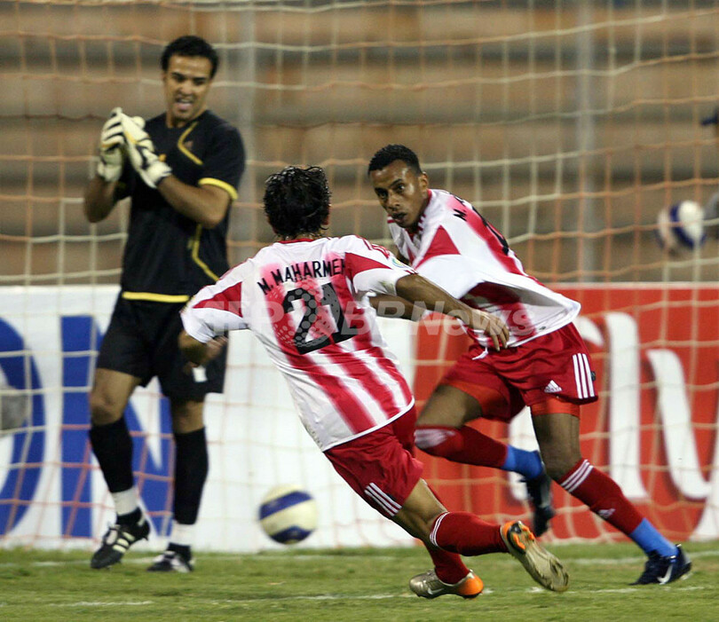 スポーツ サッカー シャバブ・アル・オルドゥン AFCカップ2007初制覇 2007年11月10日 12:23 発信地:アンマン/ヨルダン [ 中東・北アフリカ ヨルダン ] このニュースをシェア ‹ › ❮ 3/7 ❯ ゴールを決めチームメイトの%%Mohannad Maharmeh%%(中央)と歓喜するシャバブ・アル・オルドゥンの%%Mustafa Aburomeh%%(右)。(c)AFP/WORLD SPORT GROUP 画像作成中 ! 【11月10日 AFP】サッカー、AFCカップ2007(AFC Cup 2007)決勝、シャバブ・アル・オルドゥン(Shabab Al-Ordun、ヨルダン)vsアル・ファイサリ(Al-Faisaly、ヨルダン)第2戦。試合は1-1の引き分けに終わったが、シャバブ・アル・オルドゥンが2戦合計スコアを2-1としてアル・ネジメーを降し大会初制覇を果たした。(c)AFP サッカー 一覧へ> メディア・報道関係・法人の方向け 写真・動画 購入のお問合せ>