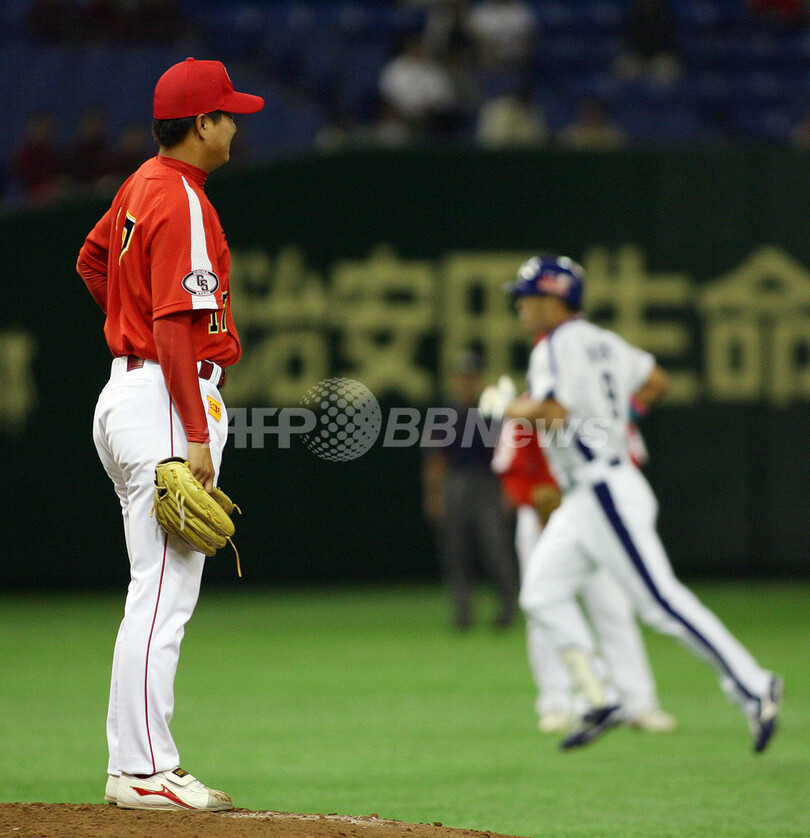 スポーツ 野球 中日ドラゴンズ チャイナ・スターズに勝利し2勝目を挙げる 2007年11月10日 16:54 発信地:東京 [ アジア・オセアニア 東京 ] このニュースをシェア ‹ › ❮ 7/7 ❯ 5回にドラゴンズの井上一樹(%%Kazuki Inoue%%)にソロ本塁打を打たれたチャイナ・スターズのルゥ・ジエンガン(%%Lu Jiangang%%)。(c)AFP/TOSHIFUMI KITAMURA 画像作成中 ! 【11月10日 AFP】野球、第3回コナミカップ・アジアシリーズ(Konami Cup Asia Series 2007)・第5試合、中日ドラゴンズ(Chunichi Dragons、日本)vsチャイナ・スターズ(China Stars、中国選抜)。試合はドラゴンズが9-1で勝利を収め、通算成績を2勝1敗とした。(c)AFP 野球 一覧へ> メディア・報道関係・法人の方向け 写真・動画 購入のお問合せ>