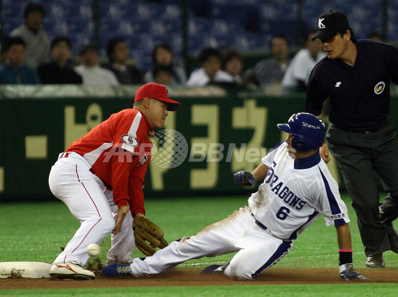 スポーツ 野球 中日ドラゴンズ チャイナ・スターズに勝利し2勝目を挙げる 2007年11月10日 16:54 発信地:東京 [ アジア・オセアニア 東京 ] このニュースをシェア ‹ › ❮ 5/7 ❯ チャイナ・スターズのスン・ウエイ(%%Sun Wei%%)の待ち構える三塁ベースへ滑り込むドラゴンズの井端弘和(%%Hirokazu Ibata%%)。(c)AFP/TOSHIFUMI KITAMURA 画像作成中 ! 【11月10日 AFP】野球、第3回コナミカップ・アジアシリーズ(Konami Cup Asia Series 2007)・第5試合、中日ドラゴンズ(Chunichi Dragons、日本)vsチャイナ・スターズ(China Stars、中国選抜)。試合はドラゴンズが9-1で勝利を収め、通算成績を2勝1敗とした。(c)AFP 野球 一覧へ> メディア・報道関係・法人の方向け 写真・動画 購入のお問合せ>