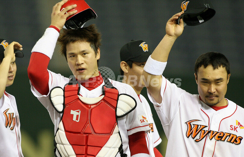スポーツ 野球 SKワイバーンズ 3連勝で決勝進出を果たす 2007年11月10日 22:15 発信地:東京 [ アジア・オセアニア 東京 ] このニュースをシェア ‹ › ❮ 1/8 ❯ 試合後に観衆の声援に応えるSKワイバーンズのパク・キョンワン(%%Park Kyung-Oan%%、左)とチョン・ギョンベ(%%Chung Kyoung-Bae%%、右)。(c)AFP/TOSHIFUMI KITAMURA 画像作成中 ! 【11月10日 AFP】野球、第3回コナミカップ・アジアシリーズ(Konami Cup Asia Series 2007)・第6試合、SKワイバーンズ(Sk Wyverns、韓国)vs統一ライオンズ(Uni-President Lions、台湾)。試合はワイバーンズが13-1で勝利を収め、3連勝で決勝進出を果たした。(c)AFP 野球 一覧へ> メディア・報道関係・法人の方向け 写真・動画 購入のお問合せ>