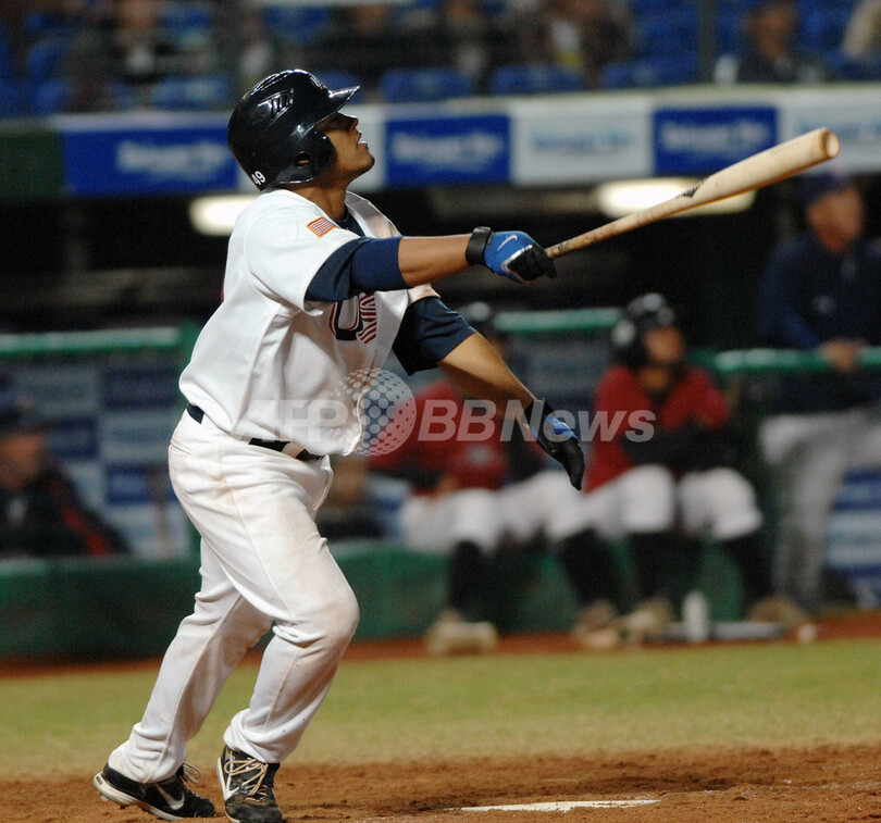 スポーツ 野球 日本 米国に敗れ2敗目 2007年11月11日 1:37 発信地:台中/台湾 [ 中国・台湾 台湾 ] このニュースをシェア ‹ › ❮ 2/5 ❯ 本塁打を放つ米国のデルウィン・ヤング(%%Young Delwyn%%)。(c)AFP/Sam YEH 画像作成中 ! 【11月11日 AFP】07野球W杯(37th Baseball World Cup 2007)・グループA、米国対日本。試合は日本が1-5で米国に敗れ、2敗目を喫した。(c)AFP 野球 一覧へ> メディア・報道関係・法人の方向け 写真・動画 購入のお問合せ>