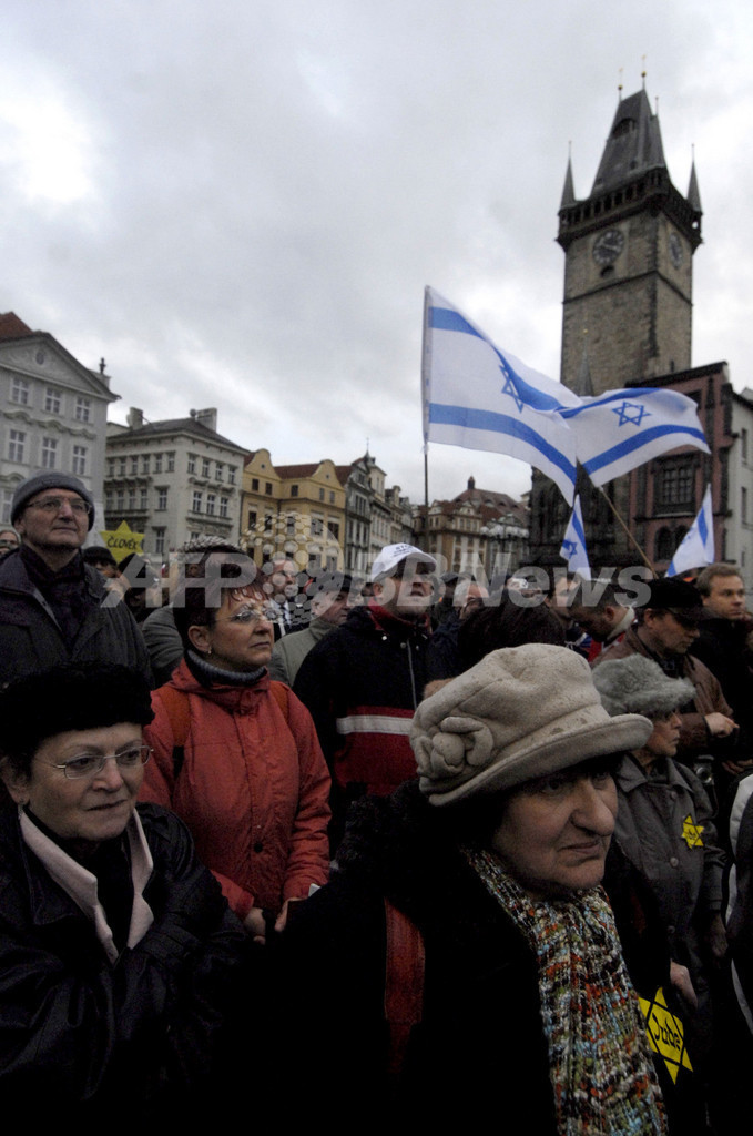 【11月11日 AFP】チェコの首都プラハ(Prague)にある旧ユダヤ人街で10日、ナチス(Nazis)によるユダヤ人襲撃事件の起きたこの日に極右ネオナチによる行進が行われるのを阻止しようと、黄色い星と赤い旗を掲げた1000人以上の人々が集まった。1938年11月10日、ドイツ全土とオーストリアの一部でナチスがユダヤ系住民の住宅、商店、シナゴーグを襲撃し100人以上が殺害された。多くの窓が割られたことから「水晶の夜(Kristallnacht、クリスタルナハト)」事件として知られる。(c)AFP