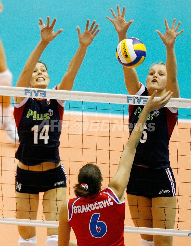 スポーツ スポーツ その他 ポーランド セルビアとの接戦を制し大会3勝目 2007年11月11日 18:05 発信地:北海道 [ アジア・オセアニア 北海道 ] このニュースをシェア ‹ › ❮ 6/9 ❯ セルビアのヨバナ・ブラコチェビッチ(%%Jovana Brakocevic%%)のスパイクに反応しブロックに跳ぶポーランドのマリア・リクトラス(%%Maria Liktoras%%)とアンナ・ポドレッツ(%%Anna Podolec%%)。(c)AFP/Toru YAMANAKA 画像作成中 ! 【11月11日 AFP】バレーボールW杯2007(FIVB Volleyball World Cup 2007)・女子・第3ラウンド、ポーランドvsセルビア。試合はフルセットの末にポーランドがセットカウント3-2(24-26、25-23、25-12、19-25、15-10)でセルビアに競り勝ち、大会3勝目を挙げた。(c)AFP スポーツ その他 一覧へ> メディア・報道関係・法人の方向け 写真・動画 購入のお問合せ>