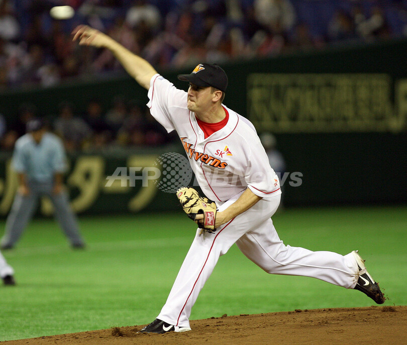 スポーツ 野球 中日ドラゴンズ SKワイバーンズを破りアジアシリーズ制覇 2007年11月11日 22:55 発信地:東京 [ アジア・オセアニア 東京 ] このニュースをシェア ‹ › ❮ 12/12 ❯ 4安打3失点で5回途中に降板したワイバーンズの先発ケニー・レイボーン(%%George Kenneth Rayborn%%)。(c)AFP/TOSHIFUMI KITAMURA 画像作成中 ! 【11月11日 AFP】野球、第3回コナミカップ・アジアシリーズ(Konami Cup Asia Series 2007)・決勝、SKワイバーンズ(Sk Wyverns、韓国)vs中日ドラゴンズ(Chunichi Dragons、日本)。試合はドラゴンズが6-5でワイバーンズを破り、アジアシリーズ制覇を果たした。(c)AFP 野球 一覧へ> メディア・報道関係・法人の方向け 写真・動画 購入のお問合せ>