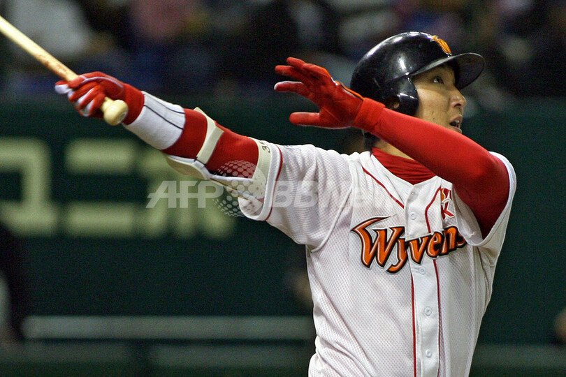 スポーツ 野球 中日ドラゴンズ SKワイバーンズを破りアジアシリーズ制覇 2007年11月11日 22:55 発信地:東京 [ アジア・オセアニア 東京 ] このニュースをシェア ‹ › ❮ 3/12 ❯ 8回に同点2ランを放つワイバーンズのイ・ジンヨン(%%Lee Jin-Young%%、手前)。(c)AFP/TOSHIFUMI KITAMURA 画像作成中 ! 【11月11日 AFP】野球、第3回コナミカップ・アジアシリーズ(Konami Cup Asia Series 2007)・決勝、SKワイバーンズ(Sk Wyverns、韓国)vs中日ドラゴンズ(Chunichi Dragons、日本)。試合はドラゴンズが6-5でワイバーンズを破り、アジアシリーズ制覇を果たした。(c)AFP 野球 一覧へ> メディア・報道関係・法人の方向け 写真・動画 購入のお問合せ>