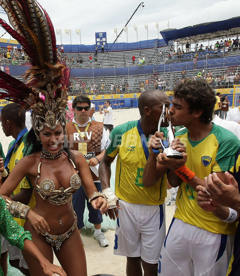 スポーツ サッカー 07ビーチサッカーW杯 ブラジル 2大会連続2度目の優勝を飾る 2007年11月12日 1:10 発信地:リオデジャネイロ/ブラジル [ 中南米 ブラジル ] このニュースをシェア ‹ › ❮ 4/7 ❯ マンゲイラ・サンバ・スクール(%%Mangueira samba school%%)のダンサーから祝福を受けるブラジルの選手たち。(c)AFP/ANTONIO SCORZA 画像作成中 ! 【11月12日 AFP】07ビーチサッカーW杯・決勝、メキシコvsブラジル。試合はブラジルが8-2でメキシコを降し、2大会連続通算2度目の優勝を飾った。(c)AFP サッカー 一覧へ> メディア・報道関係・法人の方向け 写真・動画 購入のお問合せ>