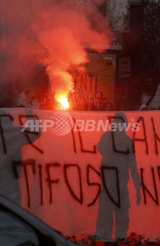 スポーツ サッカー ラツィオ・サポーターの死亡を受け多くのサポーターが抗議のデモ 2007年11月12日 5:19 発信地:ミラノ/イタリア [ ヨーロッパ イタリア ] このニュースをシェア ‹ › ❮ 2/4 ❯ 抗議のためRAIの前に集まったサポーター。(c)AFP/DAMIEN MEYER 画像作成中 ! 【11月12日 AFP】現地11日にラツィオ(SS Lazio)のサポーターが銃撃により死亡したことを受けてインテル(Inter Milan)vsラツィオ戦が延期となったが、多くのサポーターが抗議のためミラノにある国営放送のイタリア放送協会(RAI)前に集まった。銃撃によるサポーターの死はイタリア国内に混乱を招き、セリエAの3試合が延期または中止となった。(c)AFP サッカー 一覧へ> メディア・報道関係・法人の方向け 写真・動画 購入のお問合せ>
