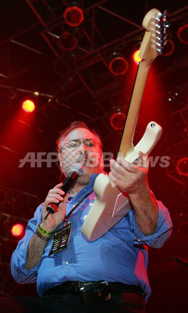 2007年11月11日、ロックンロール・ファンタジー・キャンプ(Rock ’n’ Roll Fantasy Camp)、5日目に登場し、ギターをチャリティー・オークションにかける同キャンプ創始者/CEOの%%David Fishof%%氏。(c)AFP/Getty Images Ethan Miller
