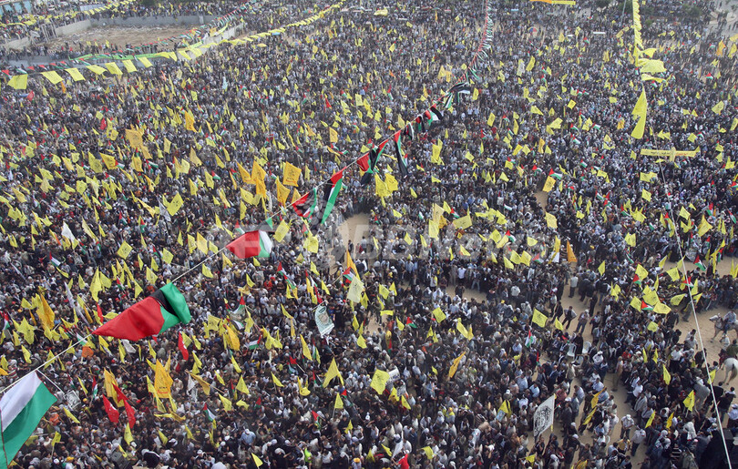 今回の追悼集会は、故アラファト議長および後継者のマフムード・アッバス(Mahmud Abbas)自治政府議長率いるファタハを支持する集会としては、5か月前にハマスが1週間におよぶ激しい戦闘の末ガザ地区を制圧して以来、最大規模となった。(c)AFP/Adel Zanoun