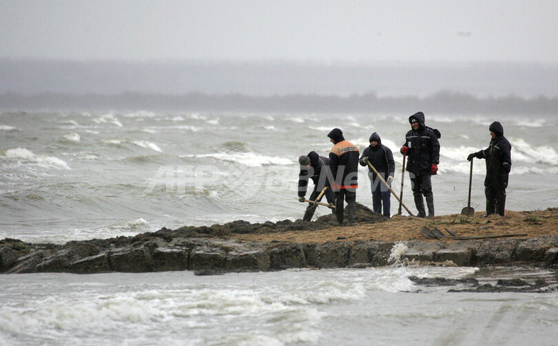【11月14日 AFP】黒海(Black Sea)周辺で暴風雨のためタンカーなど船舶5隻が難破した事故で14日、ロシア軍兵士数百人が流出した2000トンにおよぶ重油の回収作業にあたった。
