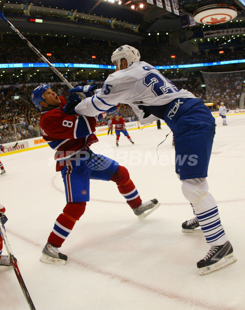スポーツ ウインタースポーツ カナディアンズ メープルリーフスを破りシーズン10勝目 2007年11月14日 16:40 発信地:トロント/カナダ [ 北米 カナダ ] このニュースをシェア ‹ › ❮ 2/4 ❯ リンク上で乱闘するメープルリーフスのハル・ギル(%%Hal Gill%%)とミカエル・コミサレク(%%Michael Komisarek%%)。(c)AFP/Getty Images Bruce Bennett 画像作成中 ! 【11月14日 AFP】07-08NHL、トロント・メープルリーフス(Toronto Maple Leafs)vsモントリオール・カナディアンズ(Montreal Canadiens)。試合はオーバータイムの末カナディアンズが4-3で勝利を収め、シーズン10勝目を挙げた。(c)AFP/Getty Images ウインタースポーツ 一覧へ> メディア・報道関係・法人の方向け 写真・動画 購入のお問合せ>
