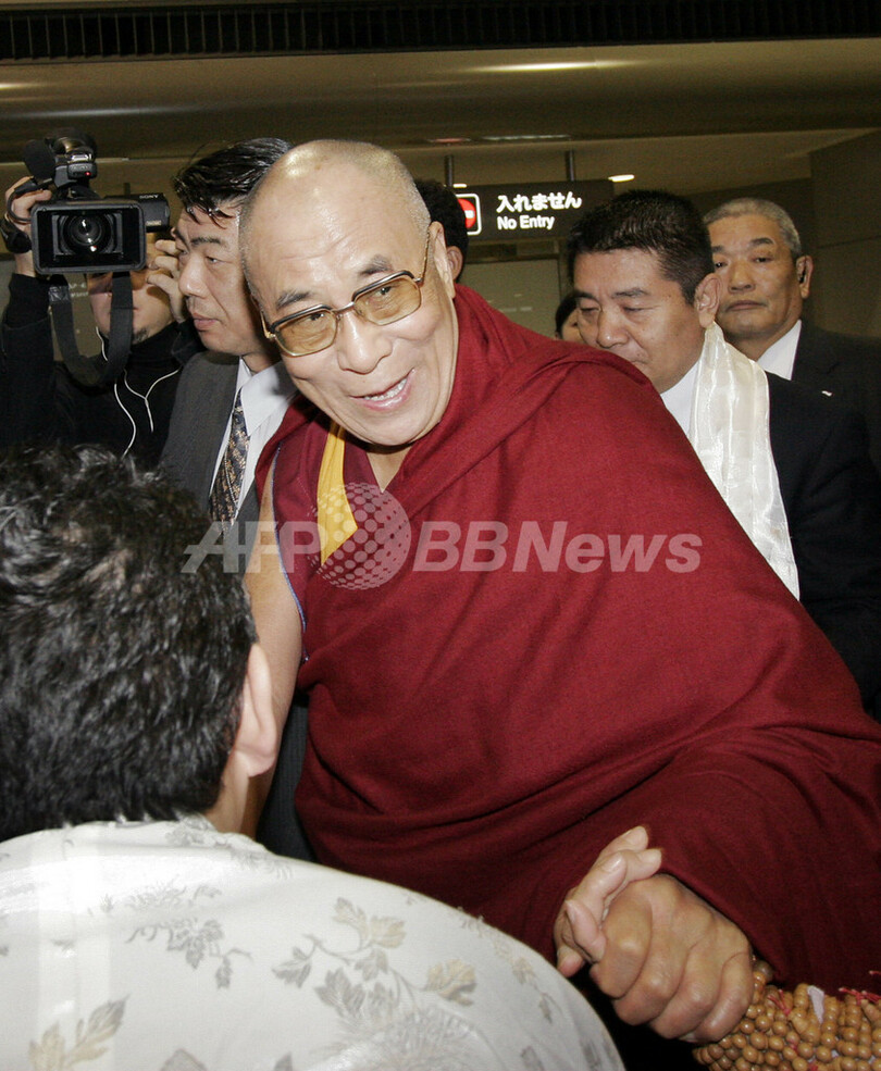 中国政府は、チベット独立を扇動する危険人物とみなすダライ・ラマの来日に反対しているが、日本政府は政治活動をしない条件で入国を許可した。(c)AFP