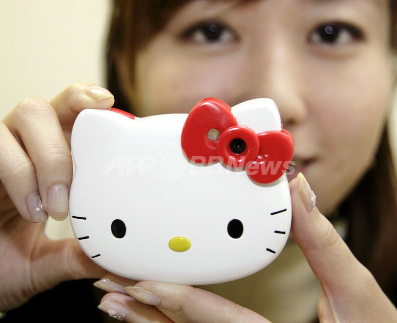 【11月15日 AFP】キャラクターグッズ大手サンリオ(Sanrio)は15日、人気キャラクター「ハローキティ(Hello Kitty)」の顔を型どったデジタルカメラ、「ハローキティフェイス形デジタルカメラ」を、店頭販売に先駆けて公開した。このカメラは、「ハローキティ」の頭の「リボン」の部分に500万画素CMOS(相補性金属酸化膜半導体)センサーと7.36mmのレンズを搭載している。同カメラの店頭販売は来月7日から。(c)AFP/Yoshikazu TSUNO