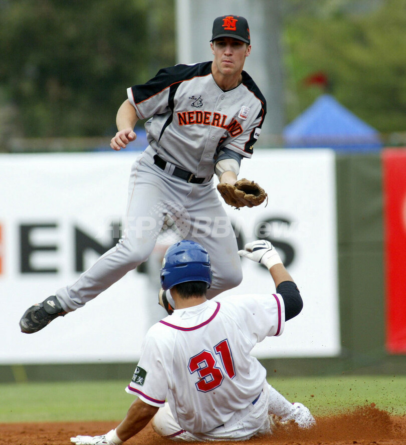 スポーツ 野球 オランダ 台湾を降し準決勝進出 2007年11月16日 23:06 発信地:台北/台湾 [ 中国・台湾 台湾 ] このニュースをシェア ‹ › ❮ 6/8 ❯ 二塁に滑り込む台湾のリン・ジシェン(%%Chihsheng Lin%%、下)。(c)AFP/ALEX LEE 画像作成中 ! 【11月16日 AFP】07野球W杯(37th Baseball World Cup 2007)・決勝トーナメント・準々決勝、台湾vsオランダ。試合はオランダが6-3で台湾を降し、準決勝進出を決めた。(c)AFP 野球 一覧へ> メディア・報道関係・法人の方向け 写真・動画 購入のお問合せ>