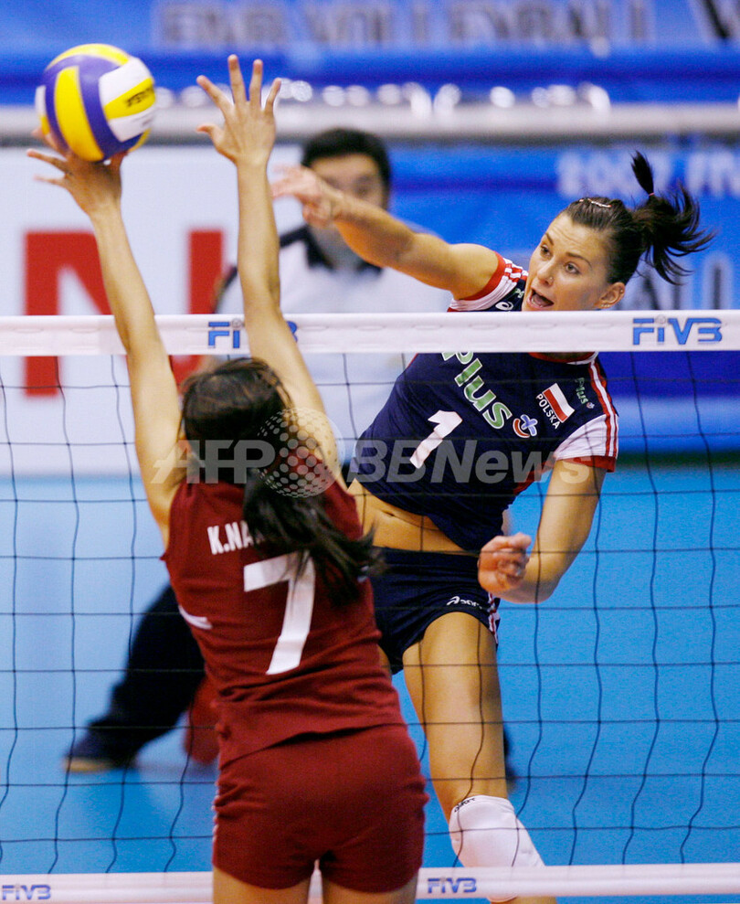 【11月16日 AFP】バレーボールW杯2007(FIVB Volleyball World Cup 2007)・女子・第4ラウンド、ポーランドvsタイ。試合はポーランドがセットカウント3-0(25-15、25-17、25-22)のストレートでタイを降し通算7勝5敗の6位で大会を終えた。一方タイは、2勝9敗の10位に終わった。(c)AFP